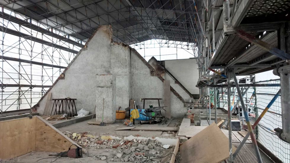 In the just completed redensification project in the Braystrasse and Versaillerstrasse block, Palais Mai is extending the roofs of the perimeter block development. The construction site has just started with a very large new roof.