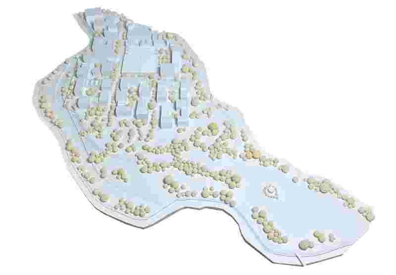The conscious use of existing resources on the island plays a central role. First of all, the green resources, i.e. the natural space with its trees, alluvial meadows and floodplains, play a role that is both experience-related and relevant to the urban climate. The contrasting talents of the initial situation are thus strengthened under the premise of sustainable and climate-silient urban development and continue to be legibly integrated into the new concept. The flowing landscape space is supplemented with new tree plantings and pathways and linked to the new as well as existing urban space. New recreational areas, raingardens, vegetation structures, play areas, tree squares and gardens break up the existing sealed surfaces, but also integrate them where functionally necessary.