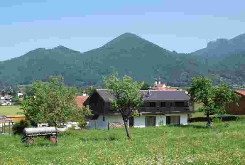 The house is a detached building situated on a beautiful plot on a gentle slope with a view of the Kampenwand in a small hamlet near Aschau. Deviating from the development plan, a compact building with an integrated garage parking space has been created. Following the slope, the house develops in split levels upwards.