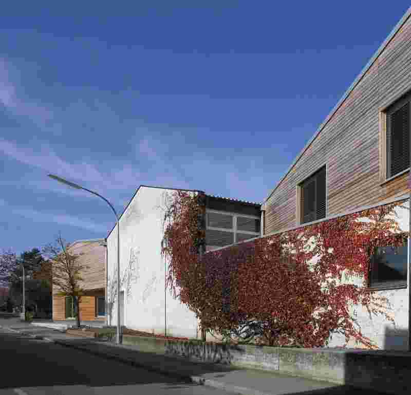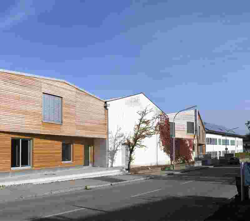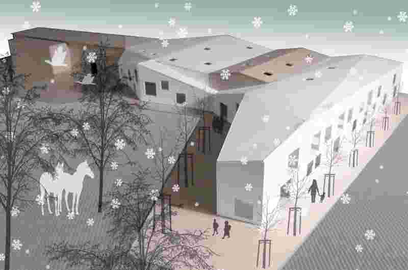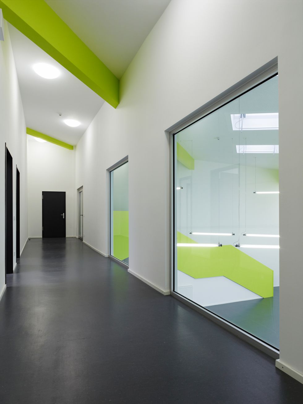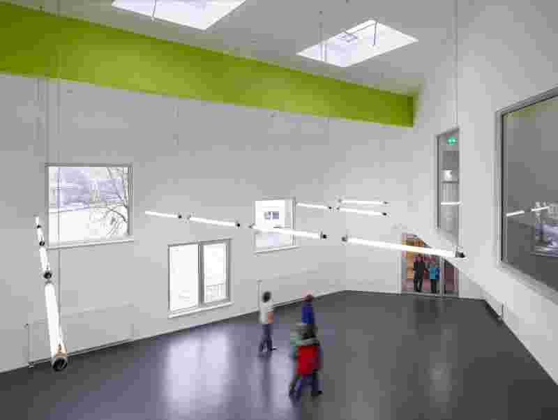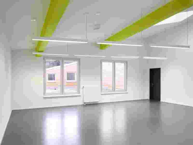 Three atriums with different dedications (schoolyard, water court, playground) form protected, partly roofed outdoor areas and create sight-lines across the courtyards. The school is built in timber systems construction from prefabricated elements, the first and second construction stage were each completed in a period of 6 month only.