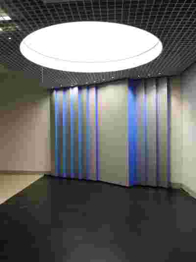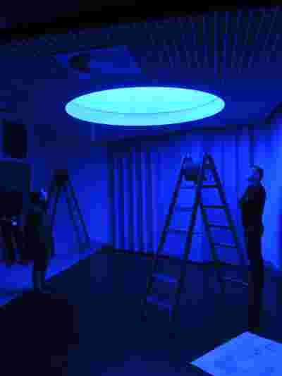 Large round light elements resembling skylights are found in the ceiling; they simulate daylight in the form of a sky with cloud formation.
