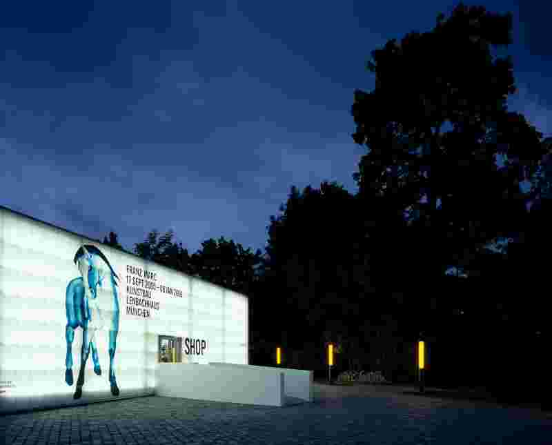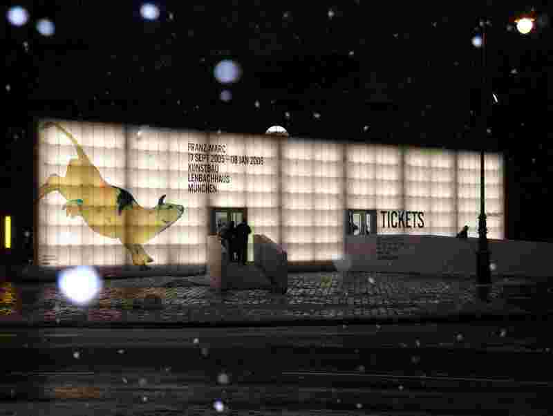 For the Wassily Kandinsky retrospective in Munich, and before that for the Franz Marc Exhibition in 2005, two temporary pavillions were set up at Königsplatz. The pavillions are reference to the exhibition, supplement the requested spaces and mark the two locations of the exibition, Lenbachhaus and Kunstbau.