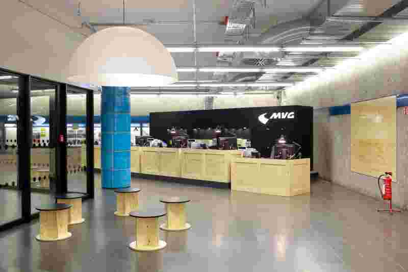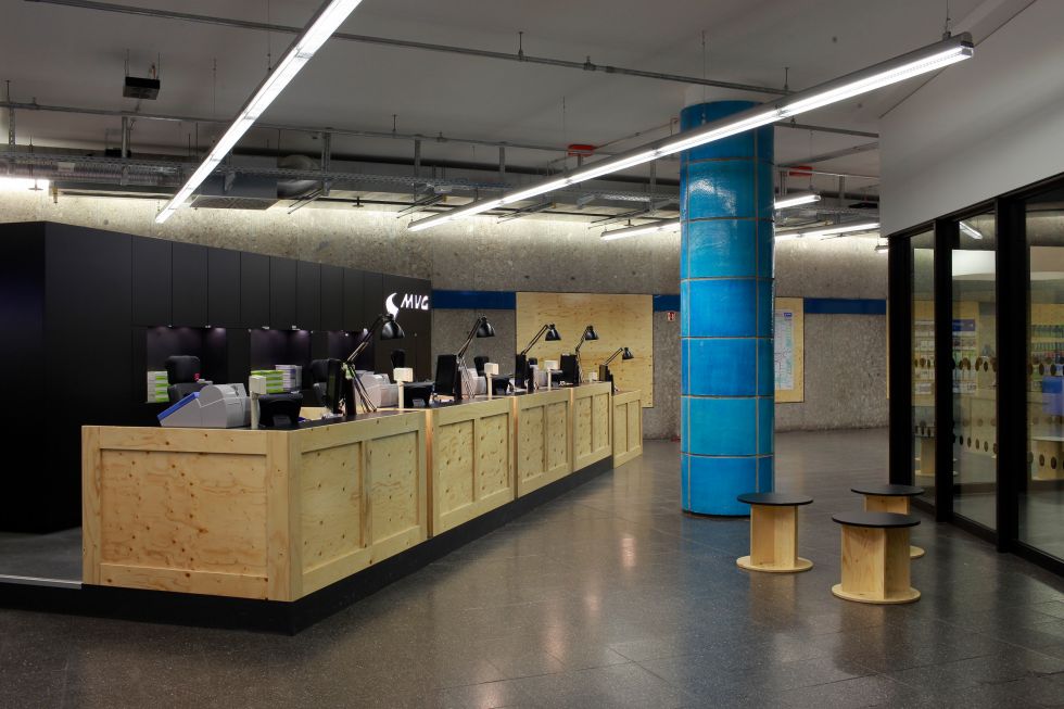 As a temporary solution for the customer centre of the MVG - Münchner Verkehrsgesellschaft (Munich Transport Company), an area on the barrier floor of the Sendlinger Tor underground station is being made temporarily usable. The new façade separates the public space from the customer centre in a free form. The continuous glass façade plays with the existing space, the pillars that characterise the location alternately become part of the centre or remain part of the outdoor space. The transparency is of great importance, as the centre is to be quickly perceived as a new, unfamiliar place.