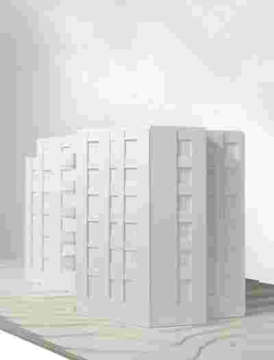 The profiled 5-7 storey point buildings and the 4-storey polygonal rows - similar to rose shoots - interlock with each other and create an open urban space defined by the landscape of the biotope. This can be read as two spatially differentiated situations: