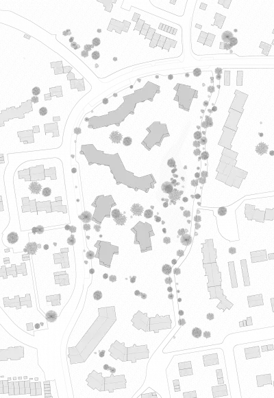 The biotope as a building block of the existing landscape, the existing passageway with its accompanying trees, and the special topography are at the centre of the considerations.