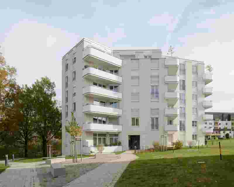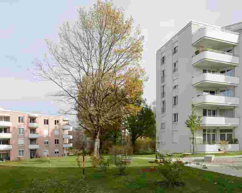 These orientations apply both to the point-shaped houses and to the Rosentrieb typology with predominantly through-stretched flats.
