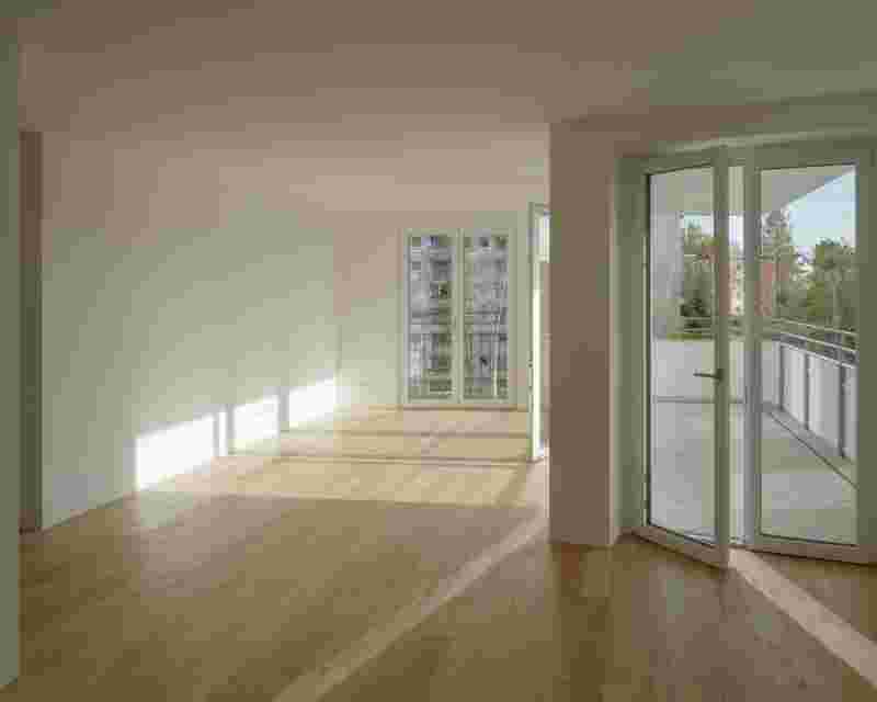 The connection to the existing paths maintains the permeability of the area and thus strengthens its original character. The clear zoning of the open spaces blends unagitatedly into the new urban setting and complements it with new communal areas and playgrounds in a central location. Access to the stationary traffic is via short routes from Leutkircher Straße, so that the inner space is kept free of traffic. All flats on the ground floor will have generous south- or west-facing open spaces.