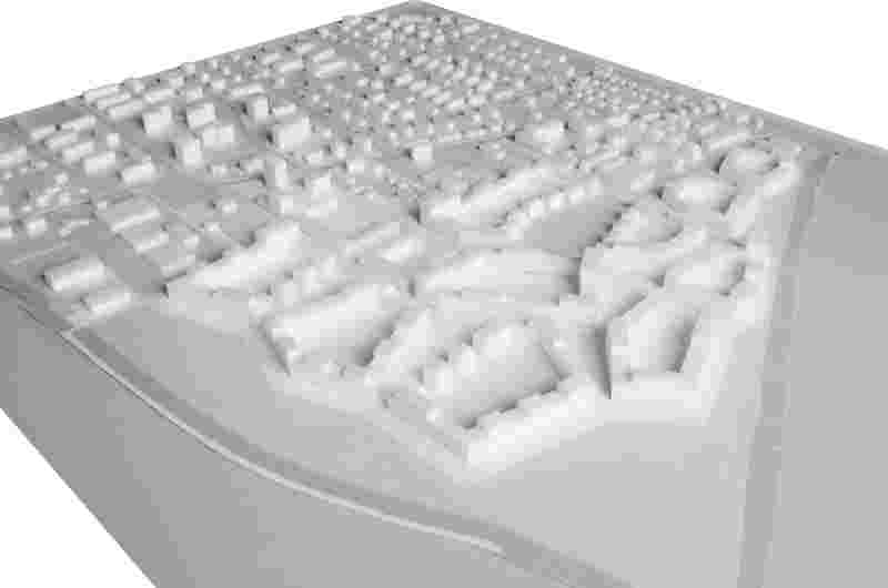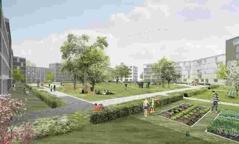 This landscaped fringe is followed by a layer of generous city blocks towards the interior of the neighbourhood as a further frame to protect against noise. The blocks open up to the landscape park like a filter and allow the open space to penetrate into the neighbourhood via the Anger as an interface. The Anger and the differently shaped neighbourhood squares form a system of spatial sequences. The clear programmatic occupancy and the defined edges of these squares create different places in the urban fabric.