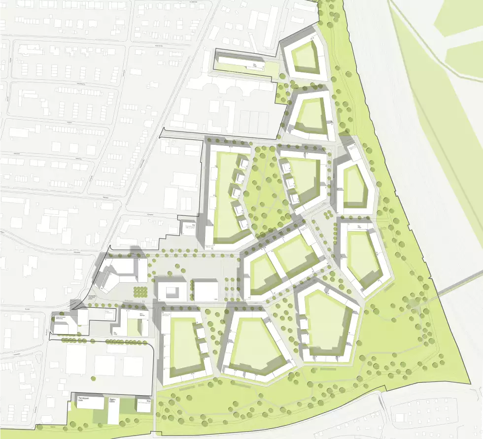 With the area on Paul-Gerhardt-Allee, the last area still to be developed within the "Central Railway Areas" in the Pasing/ Obermenzing district is being overplanned. A piece of the city with differentiated spatial sequences is to be created. The area will be given a new, clearly urban character; it will return to the city's consciousness. The surrounding neighbourhoods will be connected to the new district through spatially defined street spaces, neighbourhood squares, bicycle connections and attractive footpaths. The link with the large, high-quality open spaces is created by a large landscape park that protects the new quarter from the railway. The neighbourhood has the potential to establish itself as a new dense urban space.