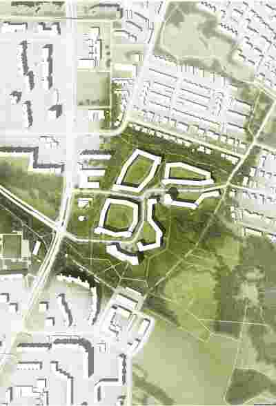 Das neue Quartier schließt den noch offenen Siedlungsrand zwischen Neuperlach und der kleinteiligen Bebauungsstruktur im Stadtteil Trudering. Die Neubebauung hat sich mit sehr unterschiedlichen Bedingungen zu arrangieren: den unterschiedlichen Ränder des Perimeters, den unterschiedlichen Maßstäben der Umgebung, dem neu zu entwickelnden Rand der Stadt und mit dem Anschluss an die groß ausgebaute und unvollendete Ständlerstraße. Diese wird in ihrem Charakter als großer Freiraum fortgesetzt in diesem Raum finden sich eine Mischform Hochpunkt und Zeile die ins Quartier weist und damit einen Abschluss und den Auftakt für die neue Entwicklung bildet. Ein weiterer Hochpunkt findet sich dann im Inneren des Quartiers am internen Platz. Die Hochpunkte sind mit 13 Geschoßen an die höchsten Gebäude Neuperlachs angelegt.