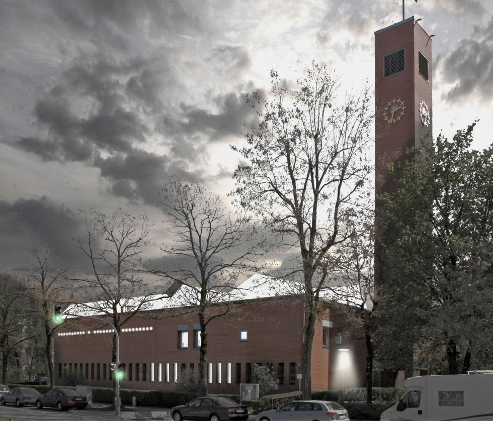 Für die neue Nutzung gilt es ein Zeichen von Offenheit und Integration zu setzen, ohne die genannten Qualitäten des Baudenkmals zu zerstören oder die Architektur der Kirche zu verfälschen. Die Idee des eingestellten Volumens in eine umfassende, schützende Fassung, die der Kirchenraum auf besondere Weise darstellt, wird aufgenommen. Neue, kleinere Räume der Gemeinschaft gesellen sich zum Kirchenraum und dienen, anders als die bisherige Wohnnutzung, der Öffentlichkeit und dem gemeinsamen Arbeiten, Feiern und Beten. Sie bilden ein neues Ganzes. Das Baudenkmal wird nicht durch Anbauten verändert, sondern erhält sich öffnende Dächer, die den neuen Funktionen einer Jugendkirche Rechnung tragen. Transluzente, helle Dachkörper senden von Innen heraus, über die Mauerkrone der Kirche ein leuchtendes Zeichen der neuen Gemeinschaft in den Stadtraum. Die offenen Dächer erhellen die Räume der Jugendarbeit und schaffen neue, großzügige, freundliche Räume. Zudem unterstreicht die neue Dachlandschaft das vereinende Gesamtkonzept aus Kirche, Gruppenräumen Cafeteria und Büros.