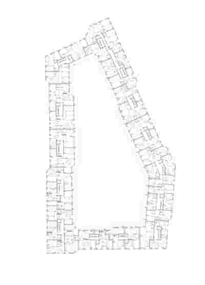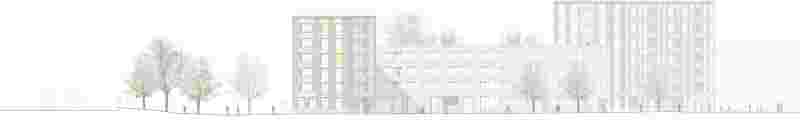 Die typologische Grundstruktur bildet sich aus einer deutlich ablesbaren Mittelschicht aus den Erschließungskernen und Sanitärräumen und zwei äußeren Schichten zum Wohnen. Dies ermöglicht eine größerer Gebäudetiefe und bessere Ausnutzung sowie interessante, unterschiedliche Typologien.