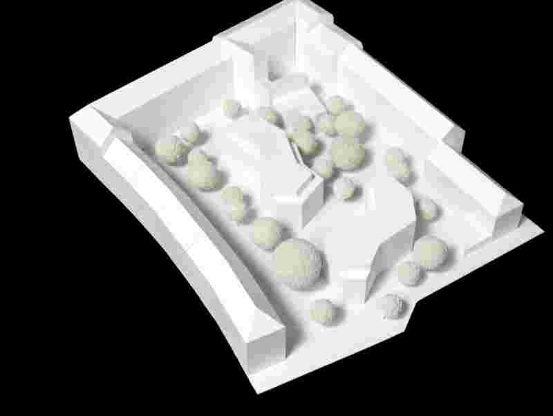 Das großzügige Hofensemble des Wettbewerbsgebietes hat eine ganz besondere Qualität. Die im Norden liegende Kirche St. Gabriel und der prächtige Baumbestand schaffen eine einzigartige Atmosphäre. Das Projekt macht es zu seiner Hauptaufgabe den Charakter des Hofes zu stärken und sowohl die neuen, als auch die bestehenden Wohngebäude davon profitieren zu lassen. Mit der neu entstehenden höheren Dichte soll weiterhin für alle Bewohner das Besondere des Ortes erfahrbar bleiben. Eine Zielsetzung des Entwurfes ist es, den wertvollen Baumbestand fast gänzlich zu erhalten.